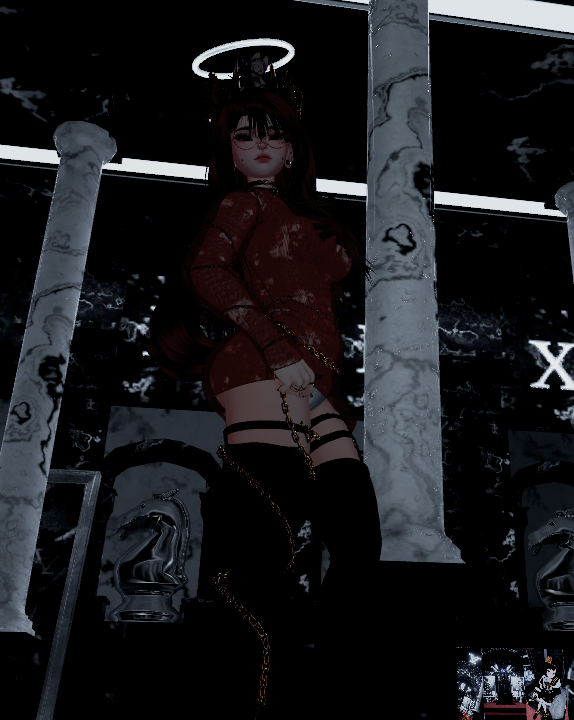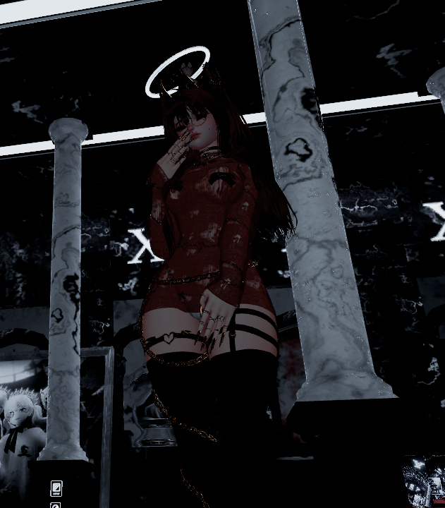 Accessories : Rings , 2 Chokers , Necklace , 2 Garters , 3 Chains (Waist , Arms , Leg) , Glasses , Head Stuffie